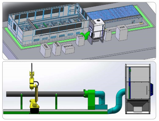 3、系統送風量和排塵量可調節,根據現場作業的情況煙塵的大小,實現風量的調節送風口和吸風口可安裝風量調節閥。